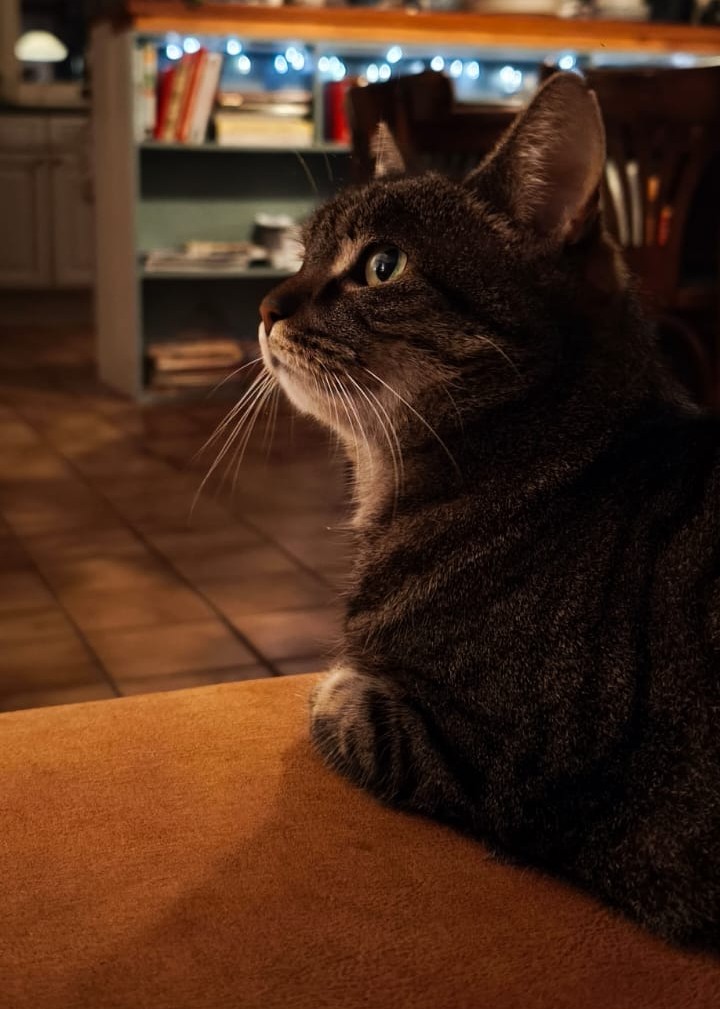 Pepe is een lief katje, z’n wat stoere uiterlijk is alleen maar schijn. Hij is een lover, geen fighter. Hoewel hij in de tuin die vervelende muggen achterna zit alsof z’n leven er vanaf hangt is hij in huis rustig en kalm. Hij is niet bang en dat is fijn voor Bella. Hij komt zelf aan voor een slaap of aaisessie op schoot en is altijd wel ergens in de buurt van ons te vinden.