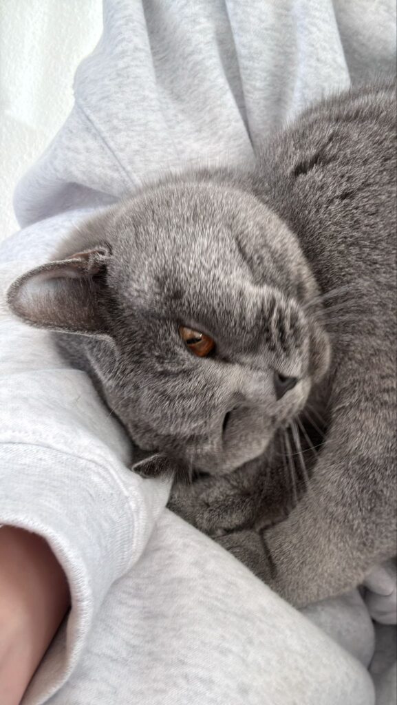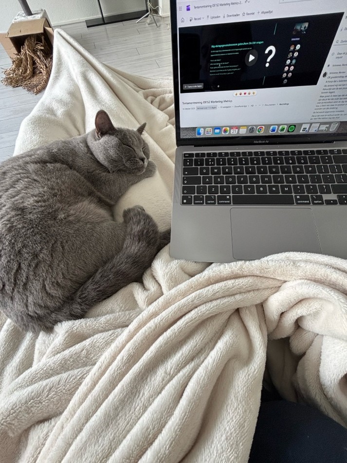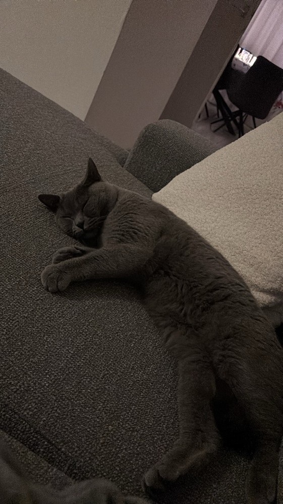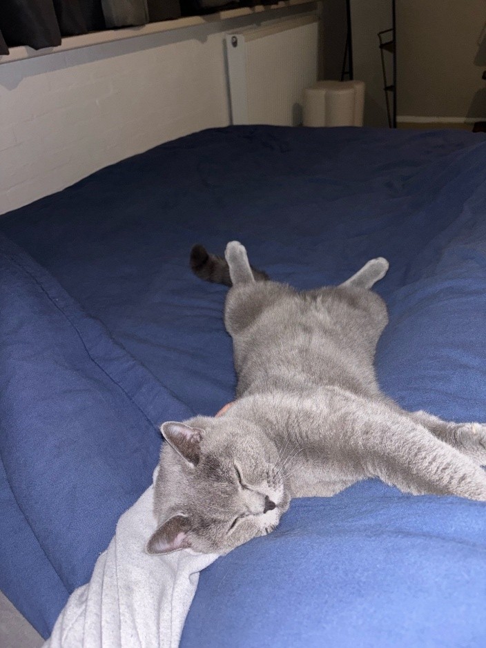 Ze is ontzettend lief aanhankelijk en soms heel druk in huis, maar soms ligt ze ook uren op bed. Ik ben echt ontzettend blij met haar en zij ook bij mij!!! Over het algemeen is ze altijd binnen een meter van mij vandaan.