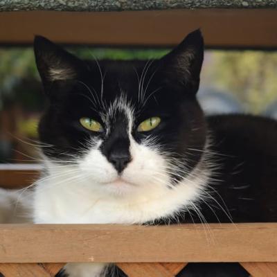 Ik ben het liefst op mijzelf. Ik zit graag op een van de tafeltjes die bij ons in de tuin staan. Binnen zit ik het liefst op de blauwe krabpaal in kamer 7. Daar is een fijn holletje onderin waar ik mij lekker kan verstoppen. Ik ben heel bescheiden, dus als er lekkers uitgedeeld wordt, sta ik echt niet meteen van voren. Dan valt het soms niet mee om ook wat te bemachtigen. Maar de verzorgers doen echt hun best voor mij, zodat ik ook een graantje mee kan pikken. Gelukkig mag ik hier alles in mijn eigen tempo doen. Dus hoe lang het ook duurt, ik mag hier heerlijk blijven wonen! Daar word ik erg blij van!
