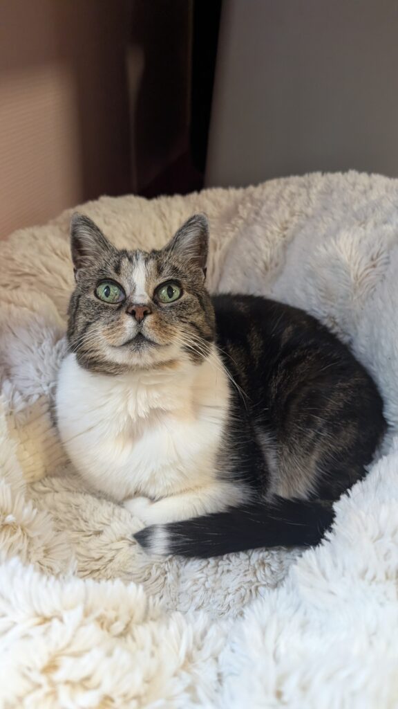 Maar ja… je wilt natuurlijk wél weten wie je in huis haalt. Nou, vooral een hele lieve, aanhankelijke poes. Mijn verzorgers vinden mij aandoenlijk. Op schoot liggen vind ik heerlijk. Dan ga ik spinnen alsof ik nooit meer wil stoppen. Toch zit er ook een klein pittig randje aan mij. Daarom zoek ik iemand die mij goed aanvoelt. Iemand die ziet wanneer ik wil knuffelen. Of wanneer ik liever even rust heb. In het begin ben ik een beetje afwachtend. Maar geef me wat tijd. Dan smelt ik vanzelf.
