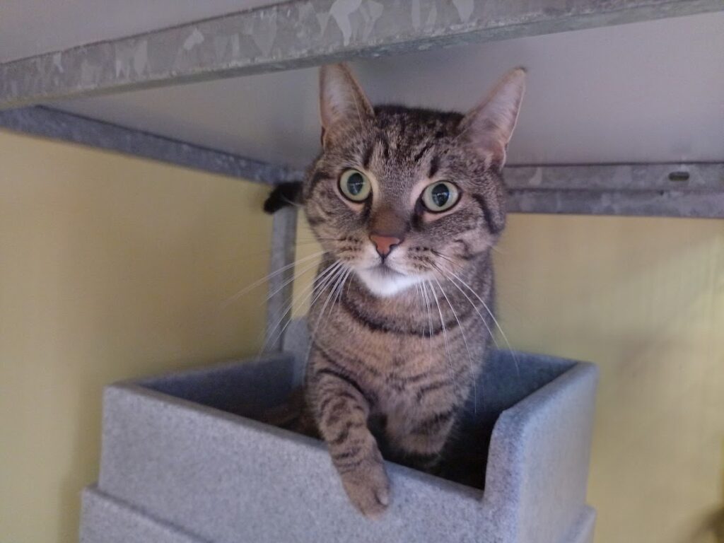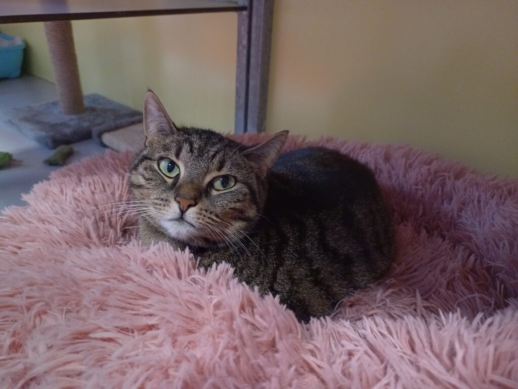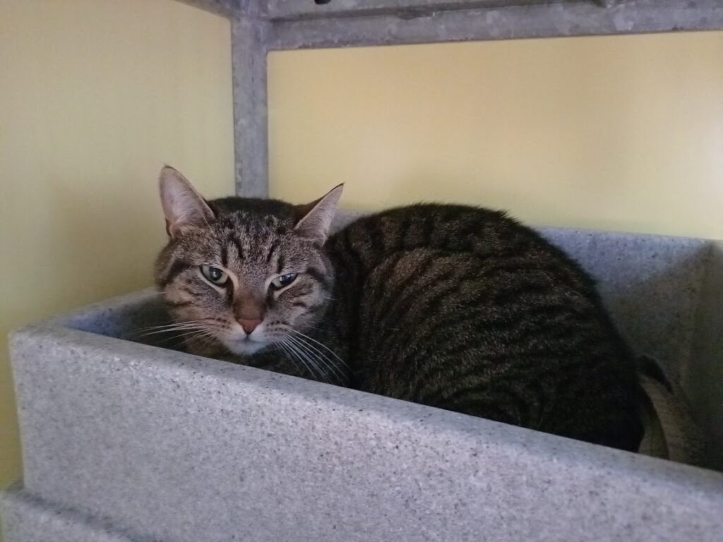 Mijn baasje deed afstand van mij. Ik voelde mij niet gelukkig in huis. Daarom kon ik weleens onvoorspelbaar reageren. Ze brachten mij naar Stichting Zwerfdier. Hier ben ik heel lief voor de verzorgers. Uithalen doe ik niet. Eerst vond ik het heel spannend hier. Al die vreemde mensen en zo veel katten. Nu ben ik wat meer gewend. Daarom mag ik op zoek naar een nieuw paleisje. Dat vind ik oh zo fijn!