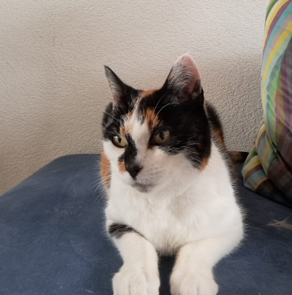 Mijn vrouwtje kwam op een dag thuis en de keukendeur stond open. Ik was nog niet aan mijn 8-weken binnen termijn, maar was er toch in geslaagd door de niet goed afgesloten deur te ontsnappen. Ik klom meteen op het schuurdak en deed net of ik daar absoluut niet van af durfde te komen. Mijn baasjes hebben toen een hele constructie gebouwd met tuintafel, groenbak en lekker eten om mij uiteindelijk naar beneden te krijgen. Mijn vrouwtje stond boven op de tuintafel om mij te pakken zodra ik mij liet verleiden om naar het lekkers te komen. Na een tijdje liet ik mij pakken.