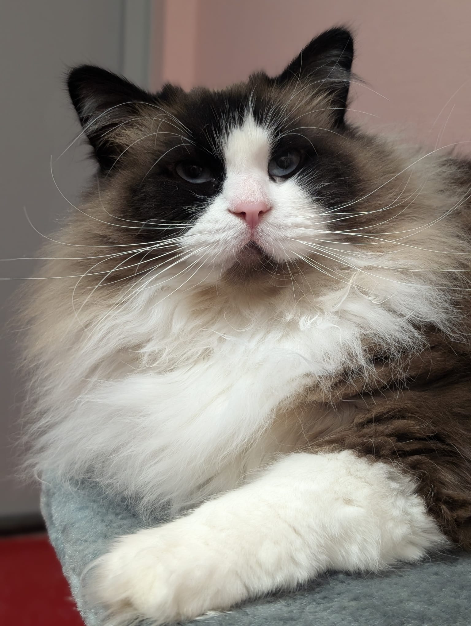 Zoals je ziet ben ik een prachtige kat. Niet zomaar een kat. Maar een Ragdoll om precies te zijn. Je gelooft het misschien niet. Maar mijn innerlijk is nét zo prachtig. Ik ben lief, aanhankelijk en makkelijk in de omgang. Aandacht en knuffelen vind ik heerlijk. Dan ga ik vaak spinnen. Zo lief. Het liefst ben ik dichtbij mijn baasje. Dat vind ik gewoon fijn. Je leest het al, ik ben echt een gezelligheidsdier!
