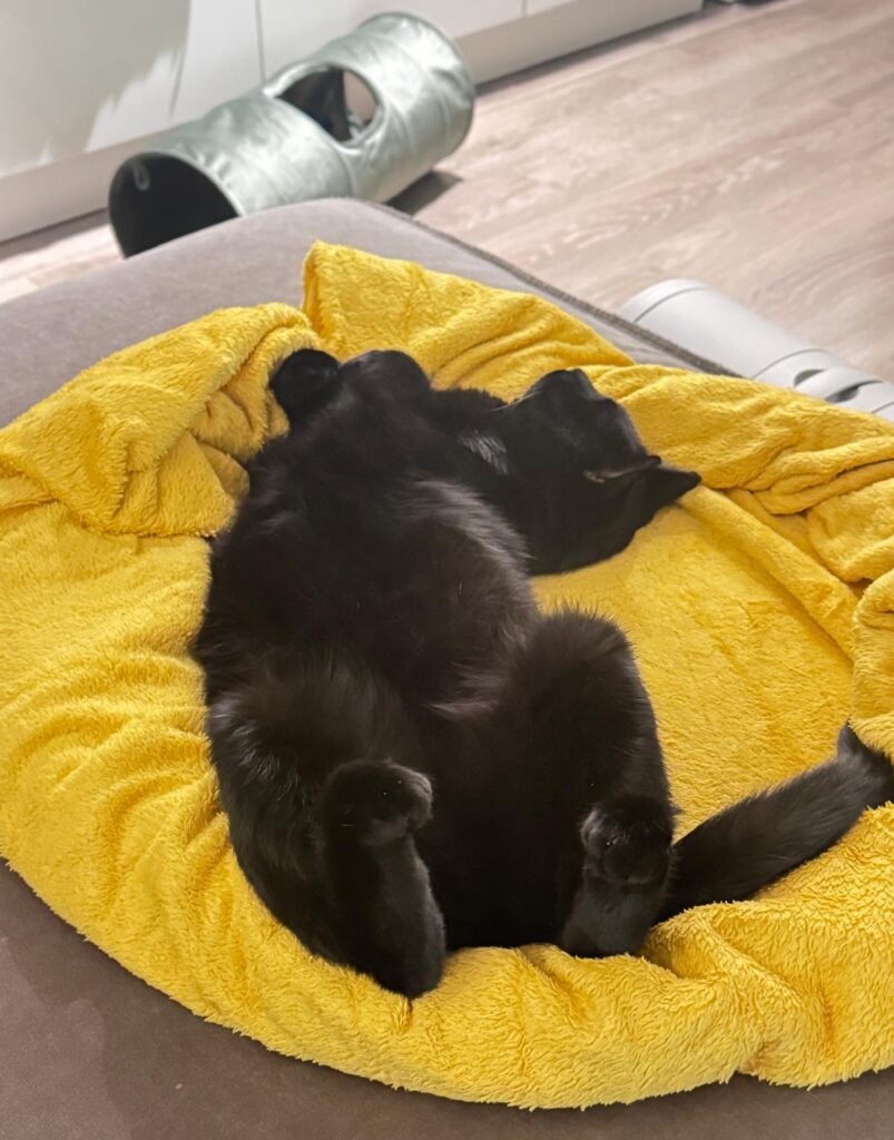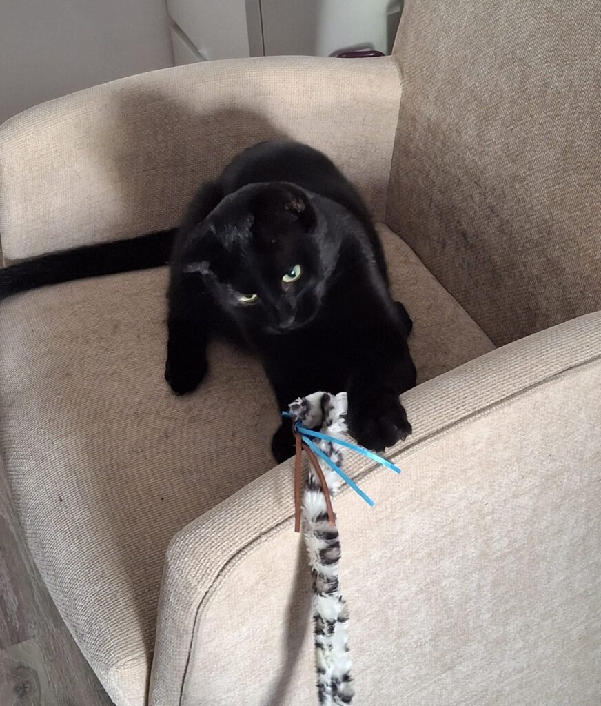 Sindsdien kan ik s’ochtends niet meer alleen naar het toilet, Mickey komt altijd goedemorgen zeggen en knuffelen. Om vervolgens mijn oren eraf te mauwen totdat er eten voor zijn neus staat. Door de dag heen vind hij het heerlijk om te spelen met zijn muizen hengeltje, te slapen of (precies als ik een online overleg heb) door het hele huis heen te rennen en de mauwen. En al ik of mijn vriend de deur uit gaan, of douchen met een dichte deur, maakt hij zich toch zorgen. Het is een echt gezelligheid beestje die ons het liefst allemaal op de bank heeft, lekker bij elkaar.