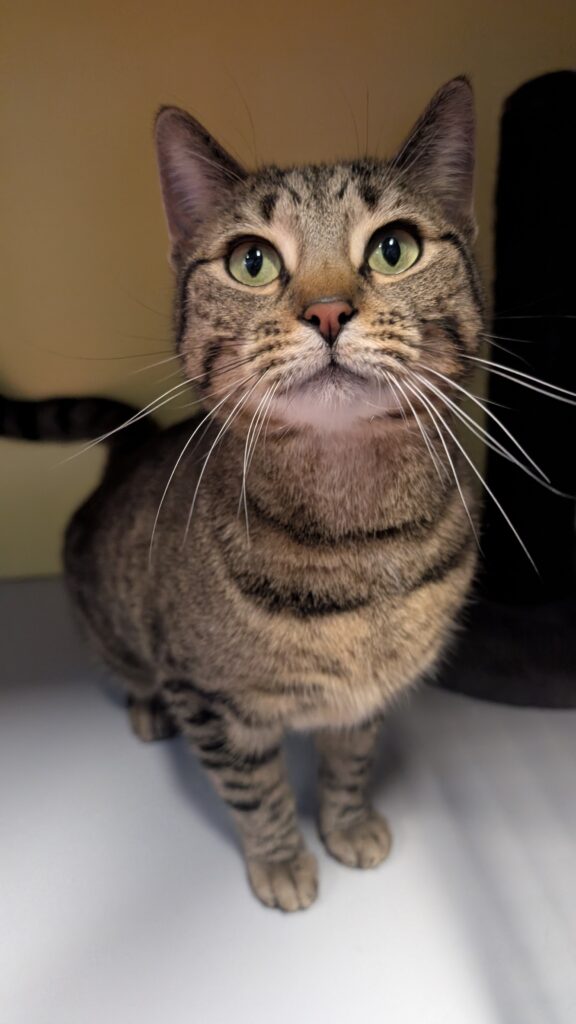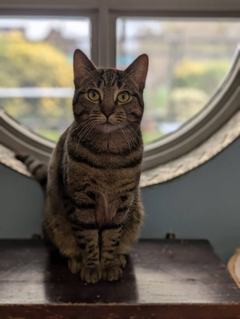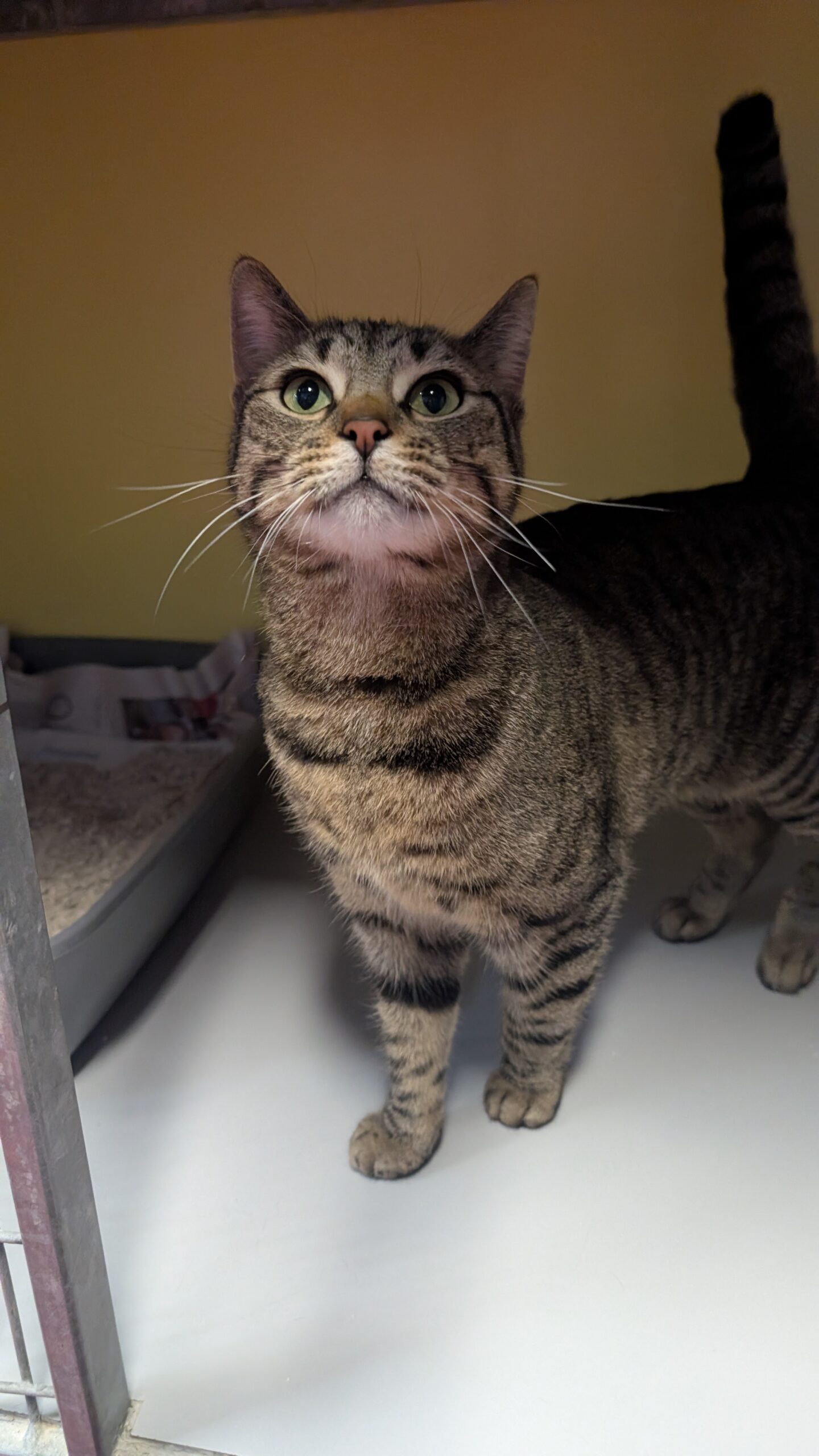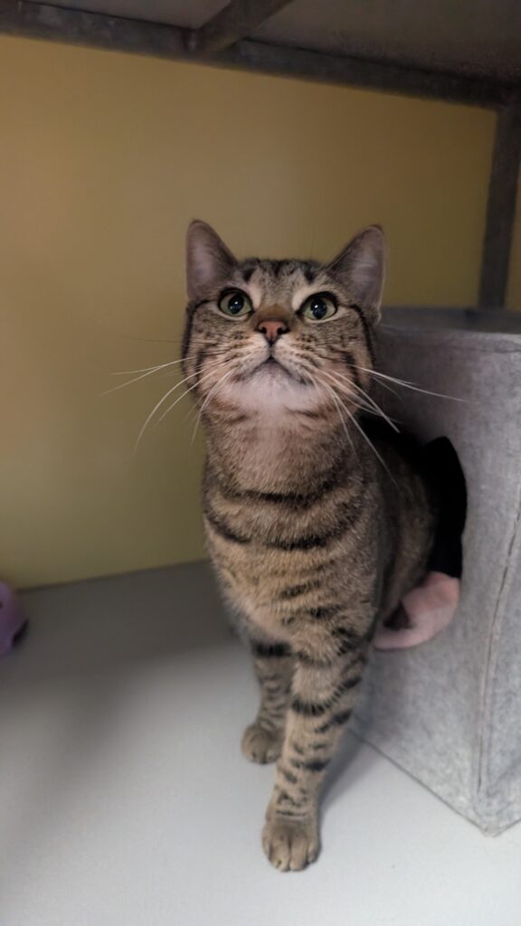Mijn baasje deed afstand van mij. Ik deed wel eens een plas in huis. Dat deed ik sinds er een hond in huis was komen wonen. Als hij er niet was, durfde ik wel naar de kattenbak. Daarom werd ik naar Stichting Zwerfdier gebracht. Hier ben ik overigens volkomen zindelijk. Al mijn behoeftes doe ik keurig op de kattenbak. In het begin was ik van slag. Maar inmiddels ben ik gewend. Nu mag ik op zoek naar een eigen huisje. Daar heb ik heel veel zin in!