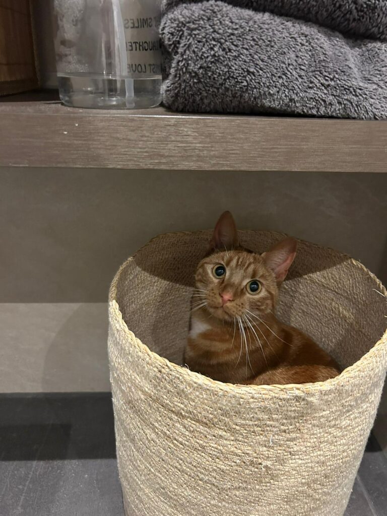 Het is een heel grappig en ontzettend lief poesje. Supersnel. Zodra er een deur opengaat, staat ze erbij. Als het een kastdeur is, zit ze ook gelijk in de kast en het liefst op een bovenste plank. Ze wil heel graag geaaid, als we dat niet snel genoeg doen dan eist ze dit wel op, dit gaat dan gepaard met heel hard spinnen. Of ze laat zich voor ons languit op de grond ‘vallen’ als een soort drama-queen met grote ogen die dan roepen ‘aai mij’.