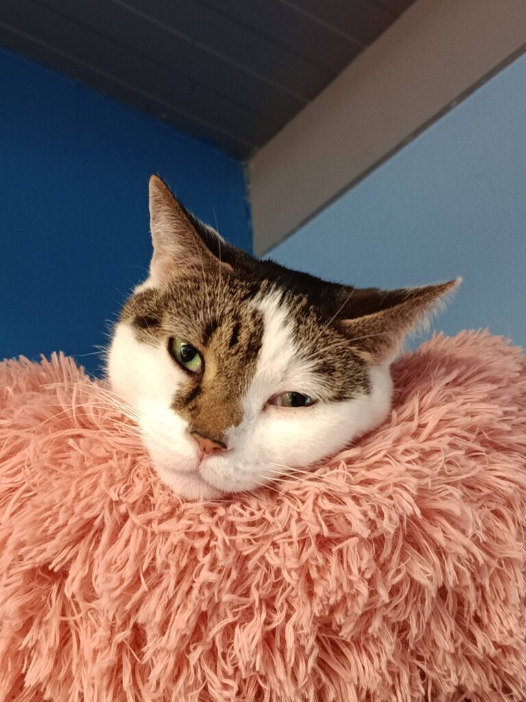 Samen met mijn zusje woonde ik in een huisje. Mijn eigenaar kon de zorg niet meer aan. En bracht ons naar Stichting Zwerfdier. In het begin was ik van slag. Maar wel heel lief. Mijn zusje en ik hebben niet zo’n band met elkaar. Toch gunnen wij elkaar het beste. Daarom besloten wij uit elkaar te gaan. Nu zoek ik een fijn huisje. Helemaal voor mijzelf. Eentje waar ik weer op en top gelukkig hoop te worden!