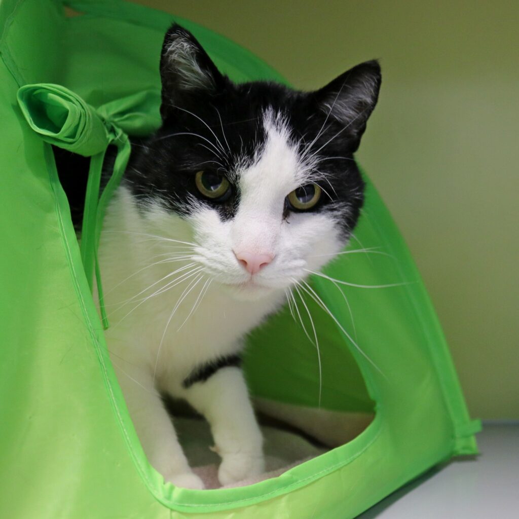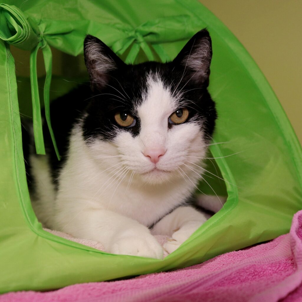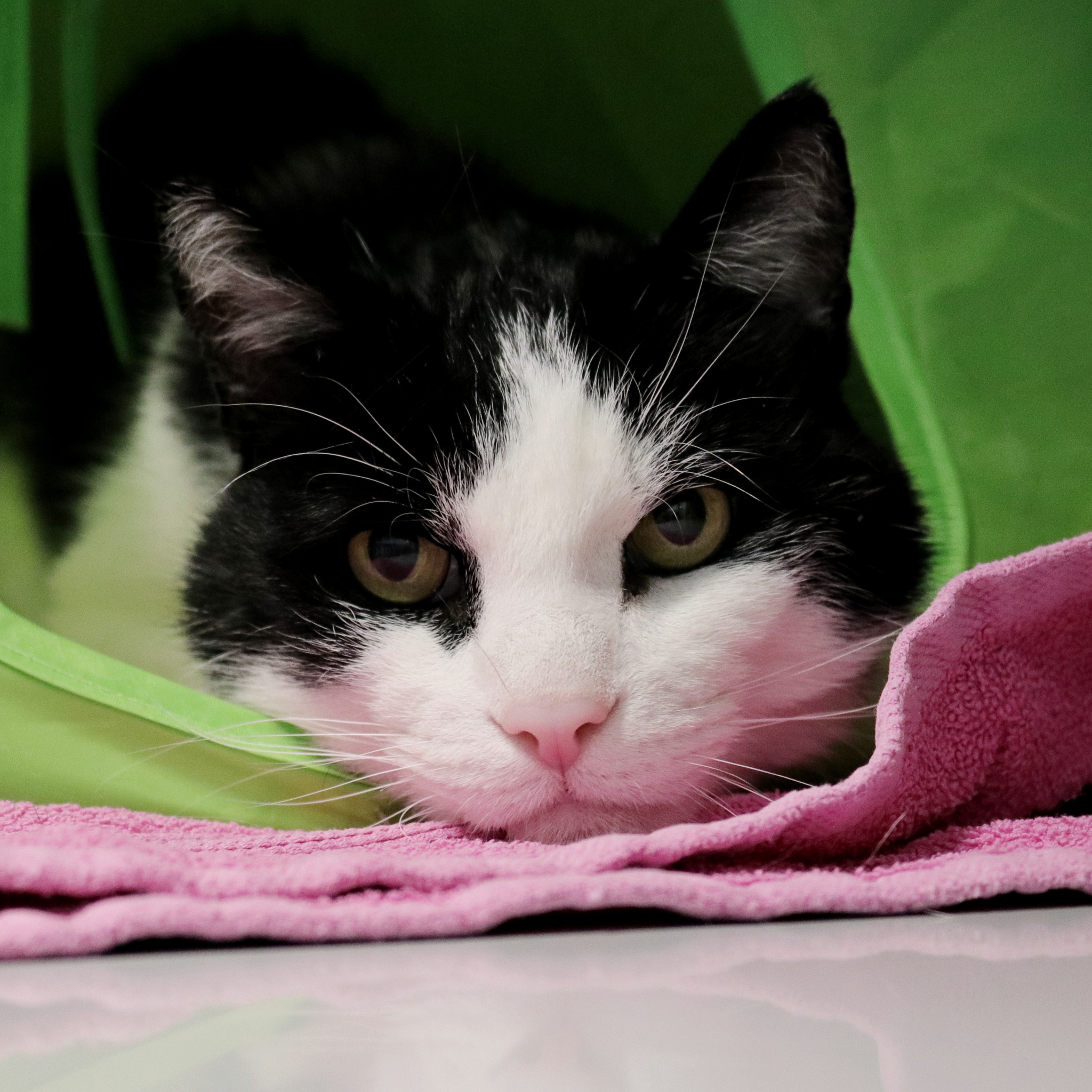 Mijn baasje deed afstand van mij. Ik deed wel eens een plas in huis. Daarom werd ik naar Stichting Zwerfdier gebracht. Hier vonden ze blaasgruis (struviet) in mijn urine. En daarvoor ben ik behandeld. Nu ben ik weer volkomen zindelijk. Al mijn behoeftes doe ik keurig op de kattenbak. In het begin was ik van slag. Maar inmiddels ben ik gewend. Nu mag ik op zoek naar een eigen huisje. Daar heb ik heel veel zin in!