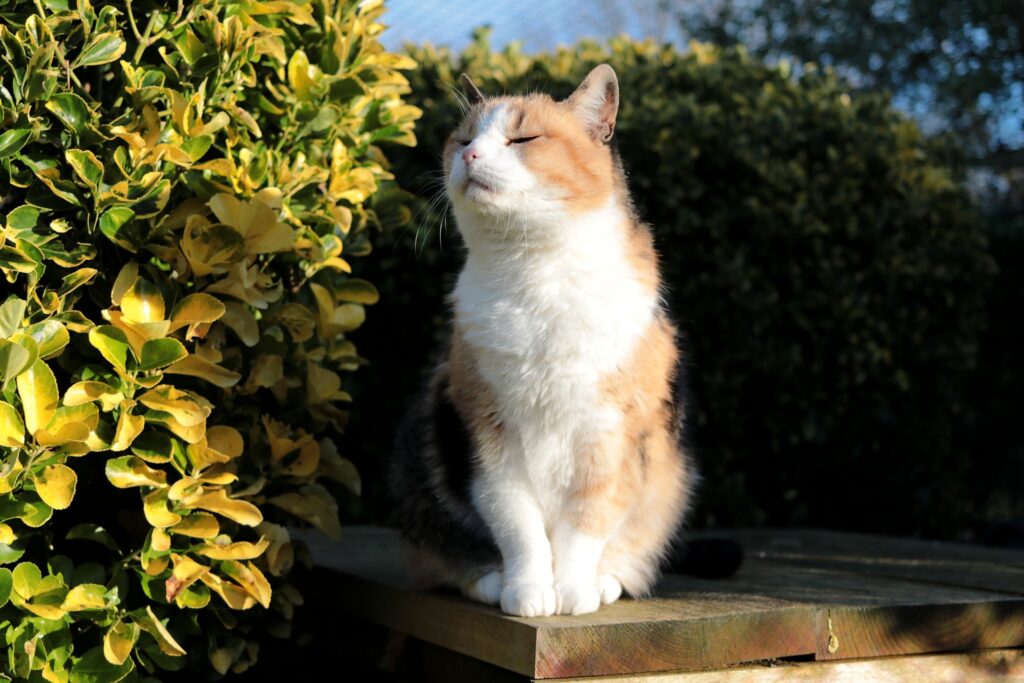 Meestal lig ik in een muurkistje in kamer 6. Het heeft lang geduurd, maar sinds een tijdje heb ik de fijne tuin ontdekt. Daar ga ik dan lekker liggen. Maar dan moet er wel een zonnetje zijn hoor. Bij slecht weer steek ik even mijn neus door de deur, maar daarna kruip ik weer lekker in mijn kistje.