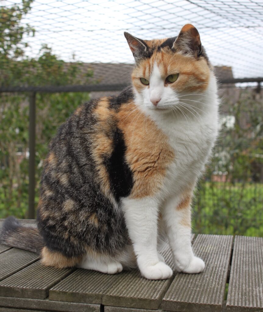 Ik ben poes Vonnie. Voordat ik permanent bij Stichting Zwerfdier in het adoptieverblijf kwam wonen, heb ik een paar keer in een huisje gewoond. De eerste keer ging niet goed vanwege mijn felle karakter en omdat ik wat onberekenbaar naar mensen toe was. De tweede keer ging ik wildplassen, waarom weet ik niet. Misschien omdat ik niet naar buiten kon. Nou ja, toen mocht ik voor altijd hier in het adoptieverblijf blijven wonen.
